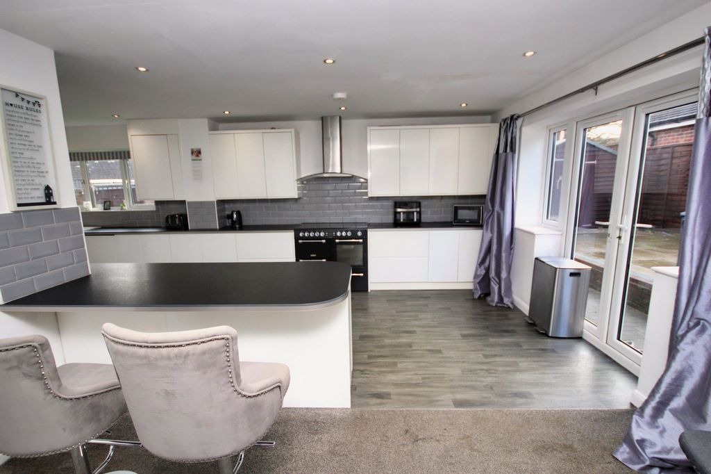 KITCHEN / BREAKFAST ROOM : Doors to garden. Space for appliances. Inset sink. Breakfast bar.