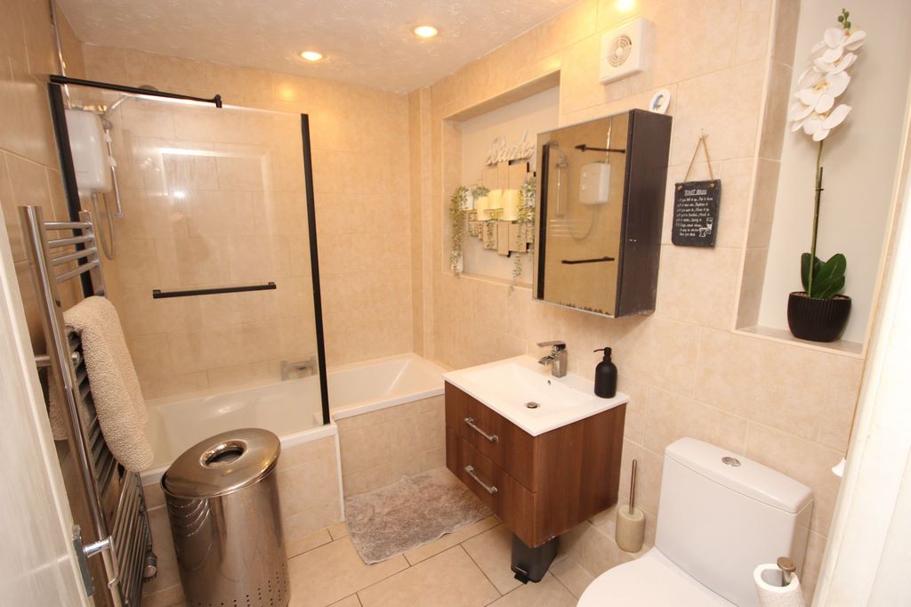 BATHROOM: Bath with shower over. W.C. Wash hand basin.