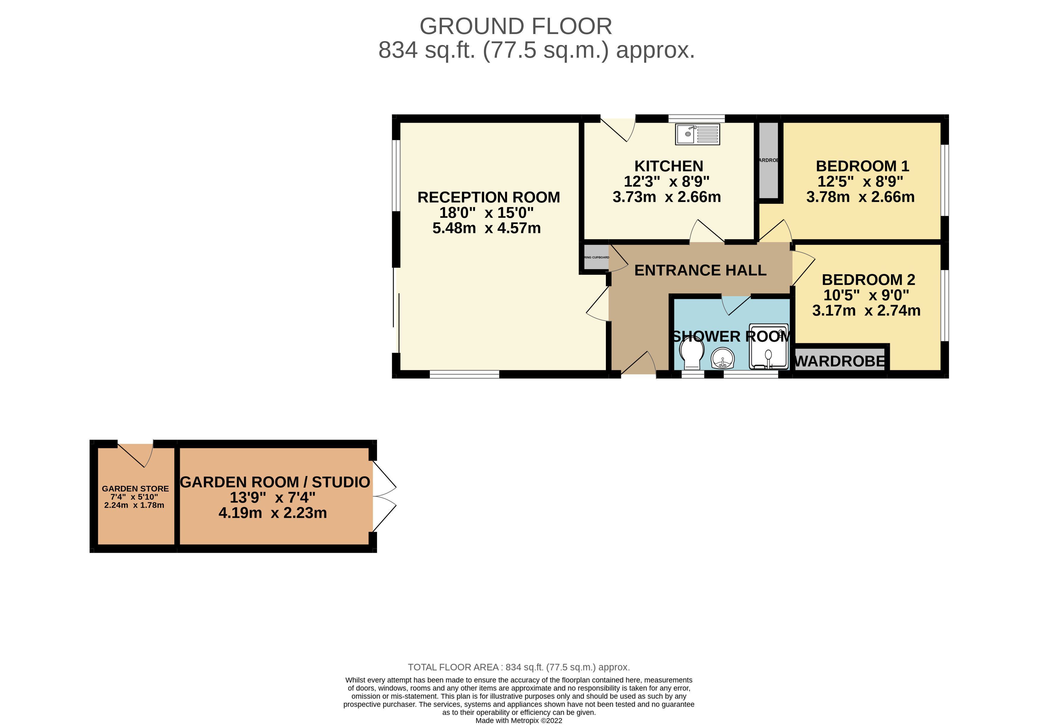 STUDIO / GARDEN ROOM: Formally the garage which has been converted to provide a useful space. Glazed doors to front. Window to side. Power and lighting.