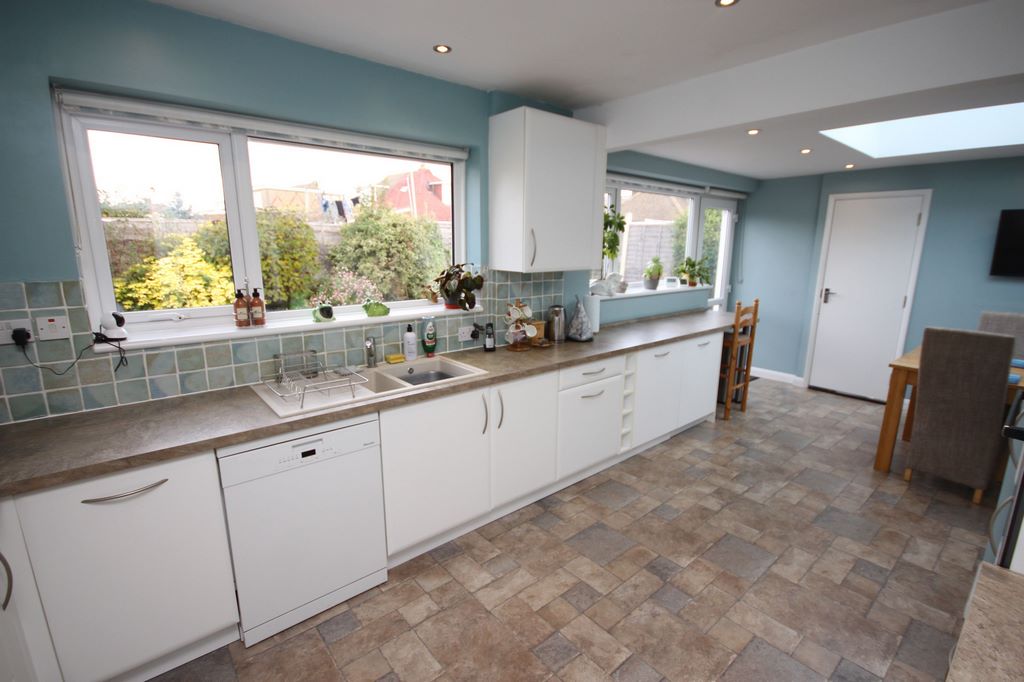 KITCHEN: Fitted with ample storage. Inset sink. Space for appliances. Inset oven and hob. Storage cupboards. Large sky light. Integrated fridge / freezer.